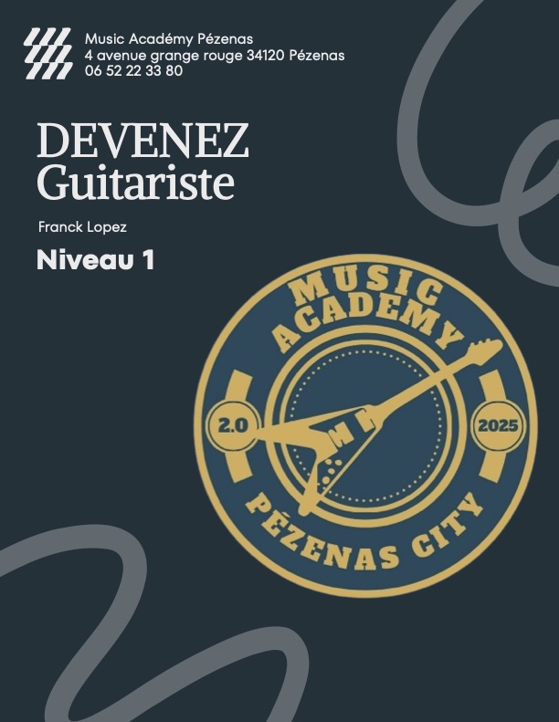 La guitare, les mains, le médiator, les éléments de la partition, les accords et beaucoup d'autres éléments indispensables à l'apprentissage.